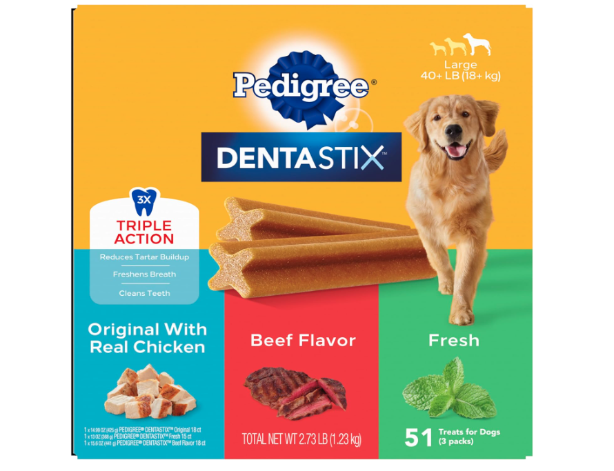 Overall: Dentastix Large Breed Dog Treats, Original, Beef & Fresh Flavor, 2.73 lb are a well‑liked, budget‑friendly dental chew option that many large‑breed dog owners turn to for routine oral support — combining palatable flavors with daily plaque‑fighting benefits.