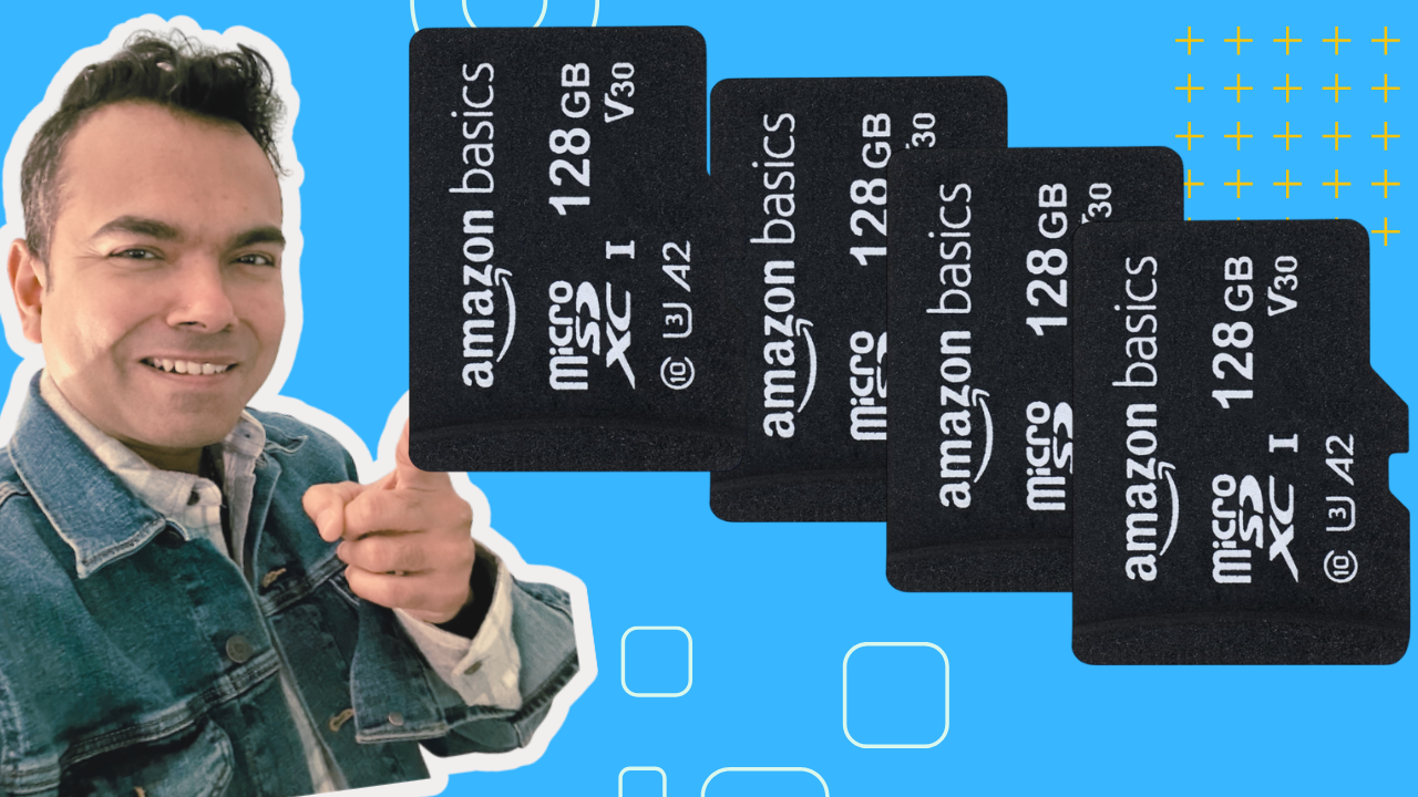 Amazon Basics microSDXC Memory Card with Full Size Adapter, A2, U3, Read Speed up to 100 MB/s, 128GB