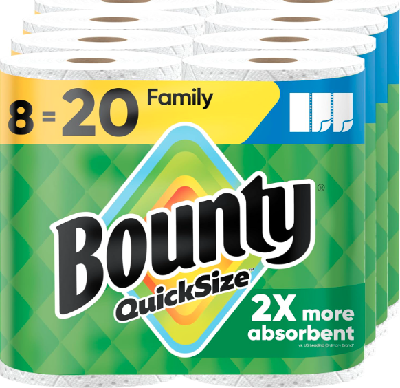 Bounty Quick Size Paper Towels, White, 8 Family Rolls = 20 Regular Rolls