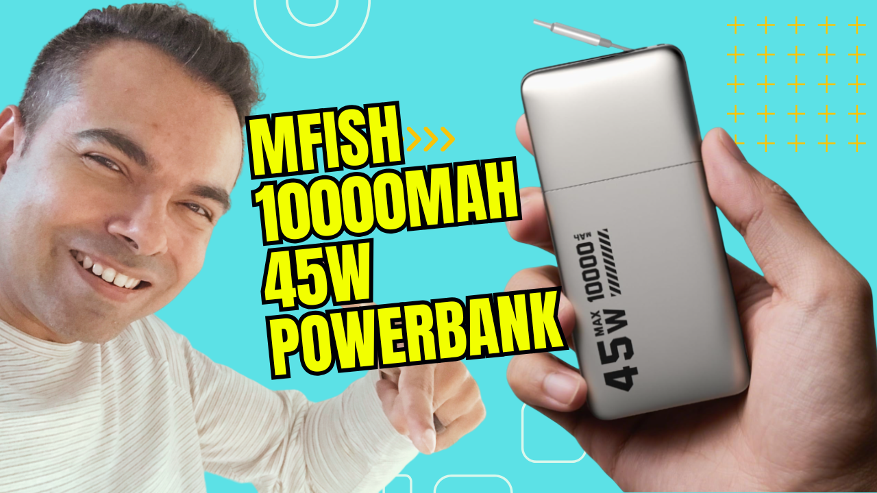 MFish 10000mAh Power Bank, 45W PD Fast Charging Portable Charger with Retractable Built-in USB-C Cable, Dual USB-C Output, LED Percent Display, Flight-Approved Travel Battery Pack for iPhone 17/16