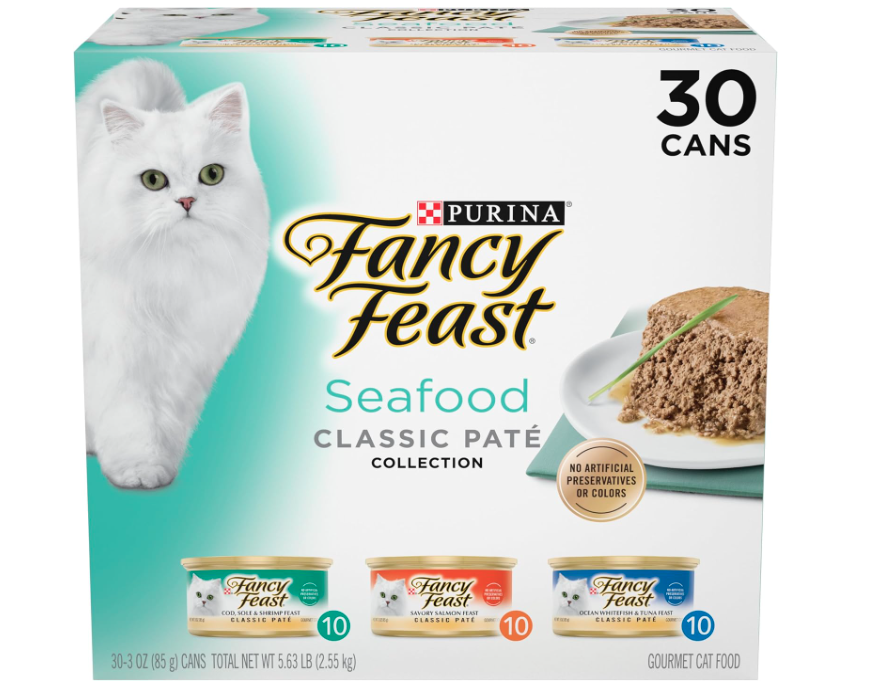 The Purina Fancy Feast Seafood Classic Pate Collection Grain-Free Wet Cat Food Variety Pack is a great option for cats who enjoy seafood and need a grain-free diet. Its focus on high-quality protein sources and balanced nutrition makes it a solid choice for providing your cat with a healthy, tasty meal. The moisture content also adds health benefits by helping your cat stay hydrated.