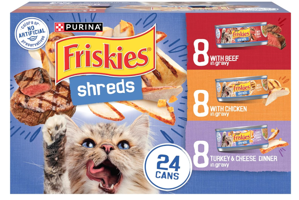If your cat enjoys moist meals with savory gravy and shredded textures, this Friskies variety pack delivers a satisfying mix of flavors without a premium price tag. It’s designed to appeal to a wide variety of feline palates while providing complete and balanced nutrition for adult cats.