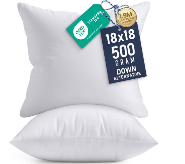 - Includes two 18″ × 18″ inserts—a classic square size that fits most decorative pillow covers for living rooms, bedrooms, and seating areas.